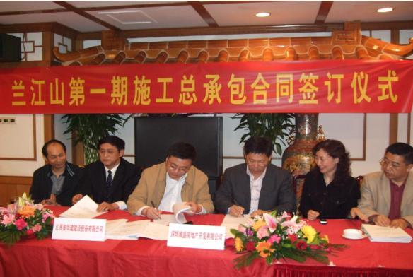 2008年4月2日,兰江·山第一期施工总承包合同在深圳市帝都酒店北京厅正式签定。兰江房地产开发有限公司董事长、总裁刘海洋、副总裁俞斌、副总裁杨大谷、江苏省华建建设股份有限公司党委书记、总经理宗有农、副总经理林建华、华建三处主任周荣生等有关领导出席了本次签约仪式。